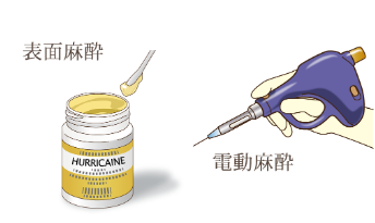 当院では麻酔をする際には、表面麻酔を塗った後に極細の麻酔針と電動注射器を使い、注射時の痛みをなくしています。
