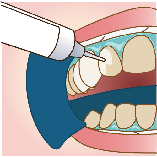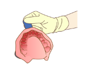 ④と⑤を数回繰り返した後、歯茎に塗っていた保護剤を取り、口内を洗い流します。