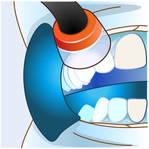 歯の表面にLEDを照射し、薬剤のホワイトニング作用を活性化させます。